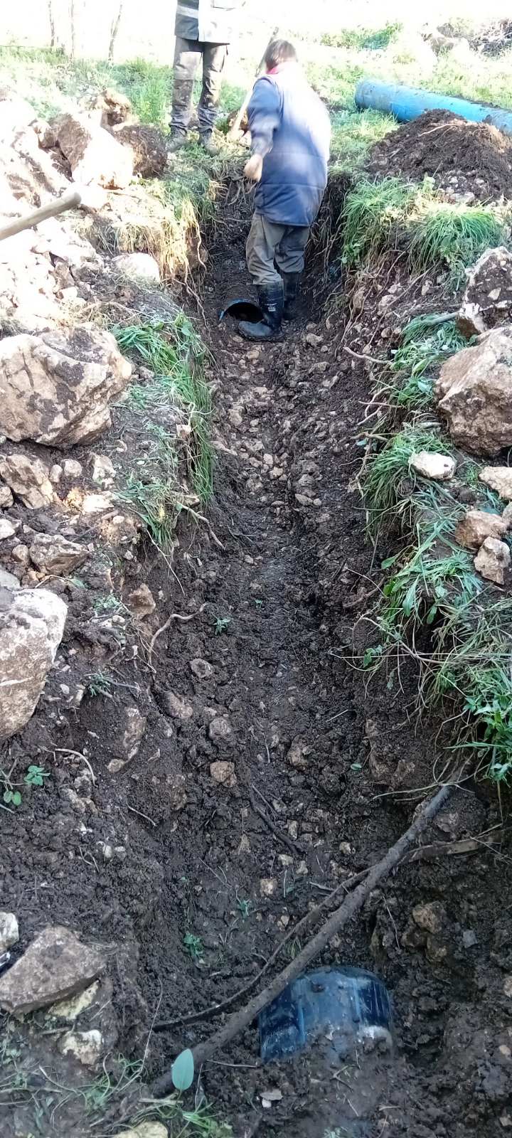 Radovi na kvaru u Skaljarima dje je ekipa Vodovoda dva dana na terenu i gdje rucno vrse kopanje na dubini od 2,6 metara i duzini 6 metara(radovi traju dva dana i pored svih vremenskih neprilika, kvar ce biti zavrsen u kasnim popodnevnim satima). Kvar bi bio otklonjen za par sati da nam je omogucen prilaz malim bagerom ali vlasnica parcele to isto nije dozvolila jer bi joj ostetili dvije grane lovorike.